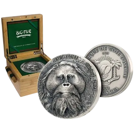 Монета «Орангутанг», 2023 г., Серебро, 155,5 гр., проба 999, КОТ Д'ИВУАР