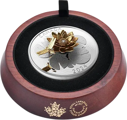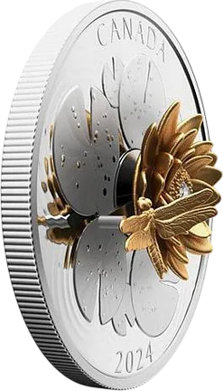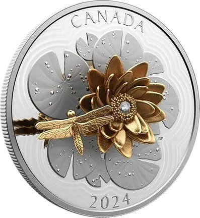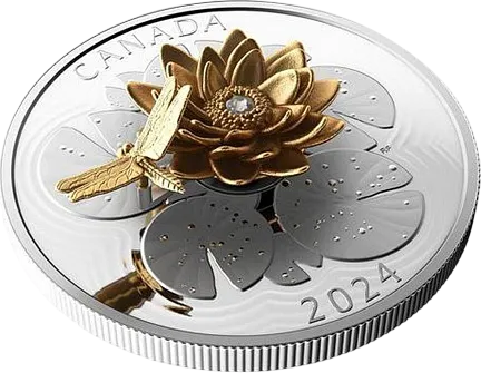Монета «Стрекоза на водяной лилии», 2024 г., Серебро, 157,6 гр., проба 9999, КАНАДА