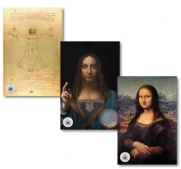 В комплект входят самые ценные шедевры да Винчи: таинственная Мона Лиза, легендарный Витрувианский человек и возвышенный Спаситель мира. Каждая деталь этих произведений искусства, увековеченных в чистом серебре, передает несравненную яркость видений Леонардо.