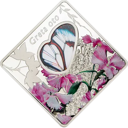 Монета «Стеклянная бабочка», 2014 г., Серебро, 50 гр., проба 925, ПАЛАУ